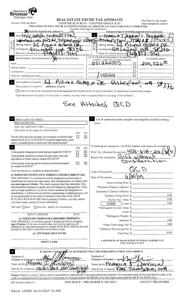 | Mailing Address: | 36 EAGLE VIEW LN PORT LUDLOW, WA 98365 | % Ownership: | 100.0000000000% |
