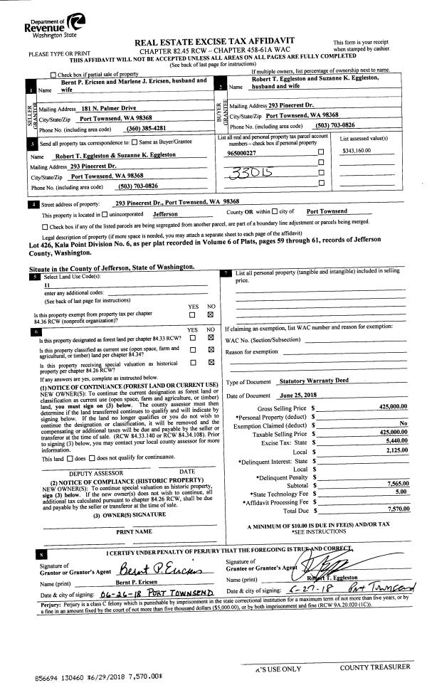 | 2 | 02/18/2019 | SWD | Statutory Warranty Deed | GARY C KNOWLTON | JOAN I FLOOD | | | $381,000.00 | 131828 | |