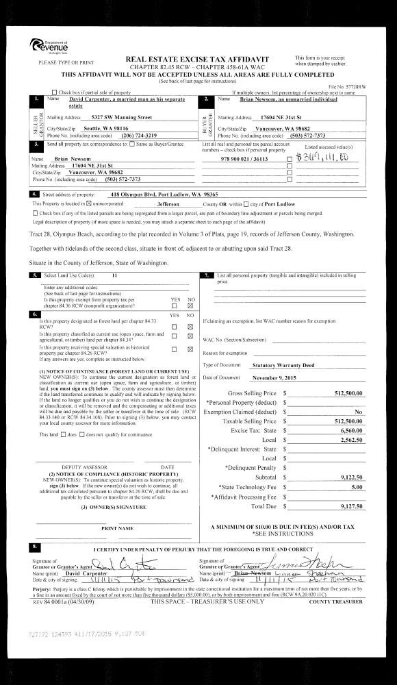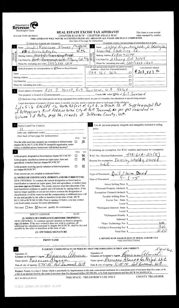 | Mailing Address: | 220 N BEACH DR PORT LUDLOW, WA 98365 | % Ownership: | 100.0000000000% |