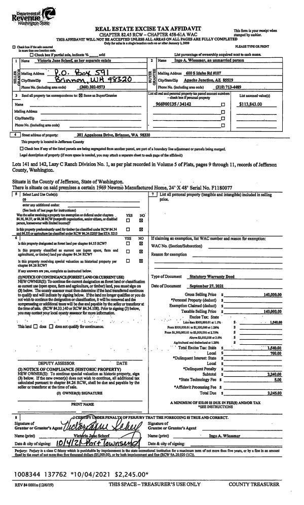 | Mailing Address: | CONNIE Y FONG TRUST DAVID & CONNIE FONG TRUSTEE'S 280 N BEACH DR PORT LUDLOW, WA 98365-9270 | % Ownership: | 100.0000000000% |