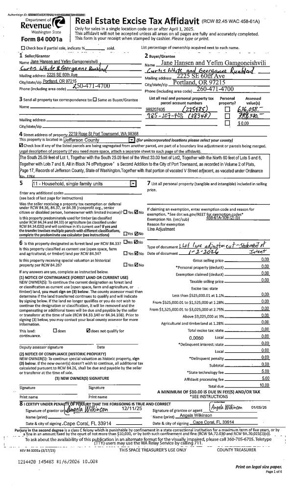 | Mailing Address: | JANICE E THOMSON 231 N BEACH DR PORT LUDLOW, WA 98365-9270 | % Ownership: | 100.0000000000% |