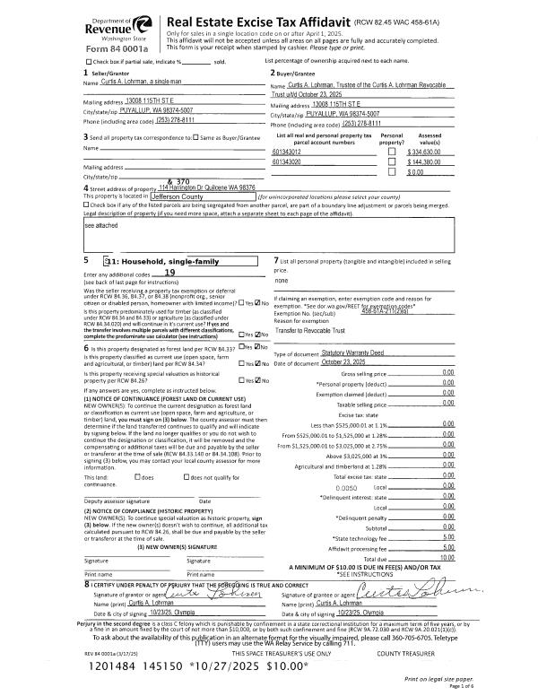 | Mailing Address: | SHANNA M VANDENBERG 54 SPARROW LN PORT LUDLOW, WA 98365-9528 | % Ownership: | 100.0000000000% |