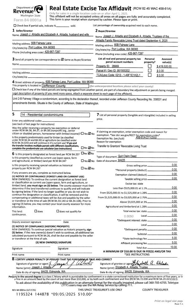 | Mailing Address: | MICHELLE A WITTMANN 91 SHIP VIEW CT PORT LUDLOW, WA 98365-9557 | % Ownership: | 100.0000000000% |