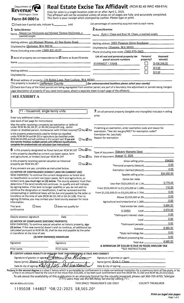 | Mailing Address: | 220 ROBIN LN PORT LUDLOW, WA 98365 | % Ownership: | 100.0000000000% |