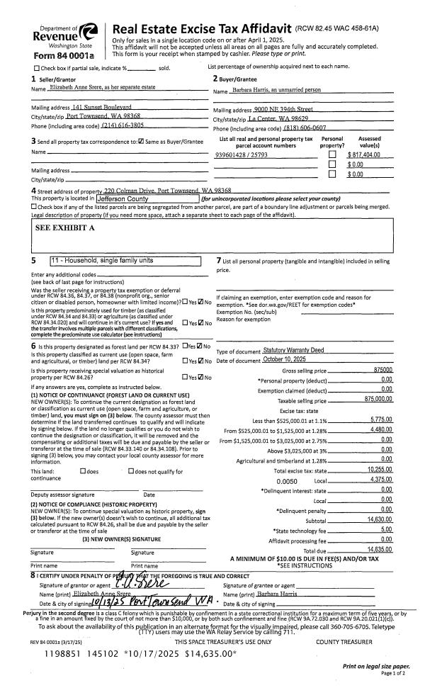 | Mailing Address: | 180 ROBIN LN PORT LUDLOW, WA 98365-9522 | % Ownership: | 100.0000000000% |