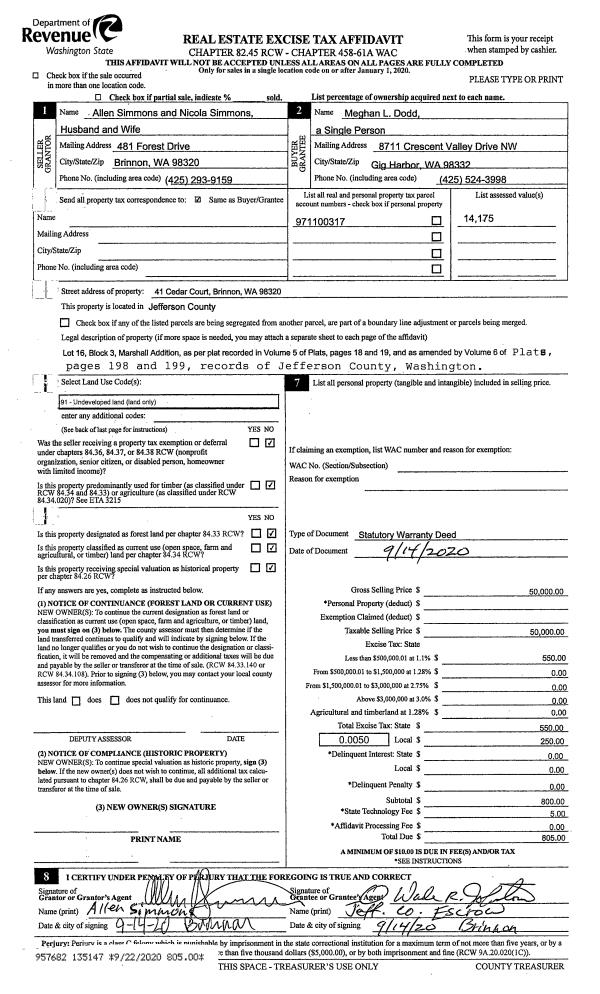 | 1 | 03/23/2021 | SWD | Statutory Warranty Deed | ROGER D HOSTO REVOCABLE TRUST | FENJE EVERT | | | $125,000.00 | 136410 | |