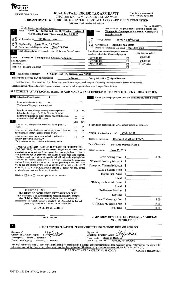| Mailing Address: | SALLY J TOMAR 431 LEE WAY BRINNON, WA 98320-5102 | % Ownership: | 100.0000000000% |