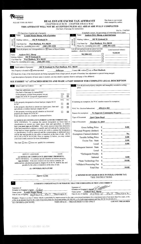 | Mailing Address: | 300 WEBB RD SEQUIM, WA 98382-9267 | % Ownership: | 100.0000000000% |