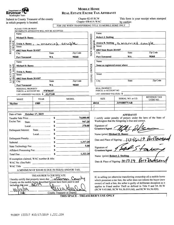 | Mailing Address: | 1416 TREMONT ST PORT TOWNSEND, WA 98368-4072 | % Ownership: | 100.0000000000% |