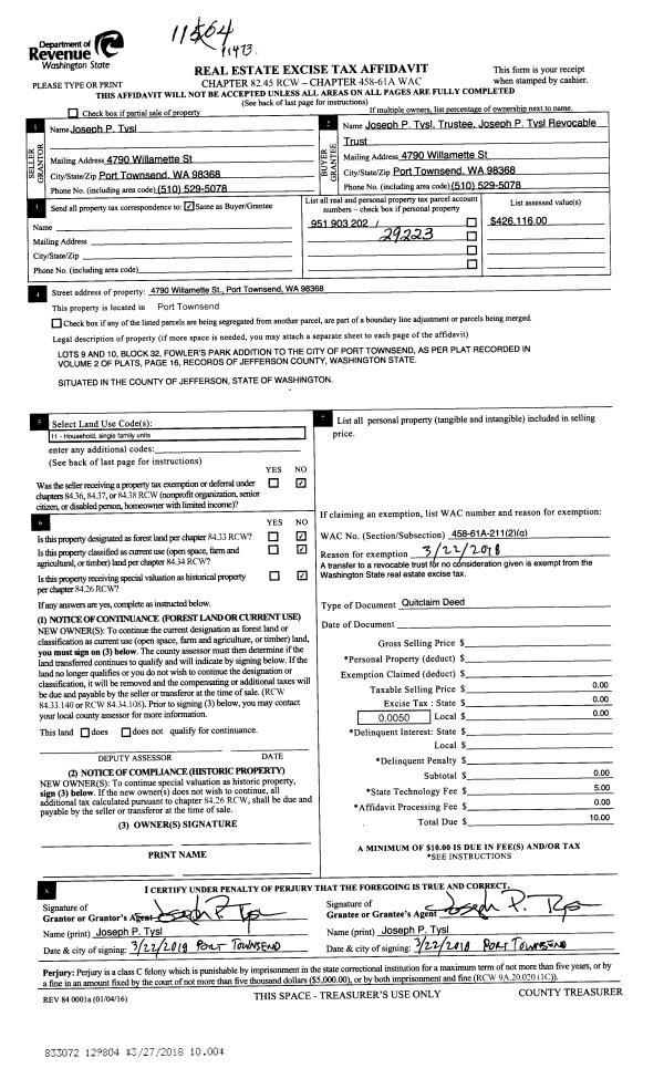 | Mailing Address: | 1209 TREMONT ST PORT TOWNSEND, WA 98368-4031 | % Ownership: | 100.0000000000% |