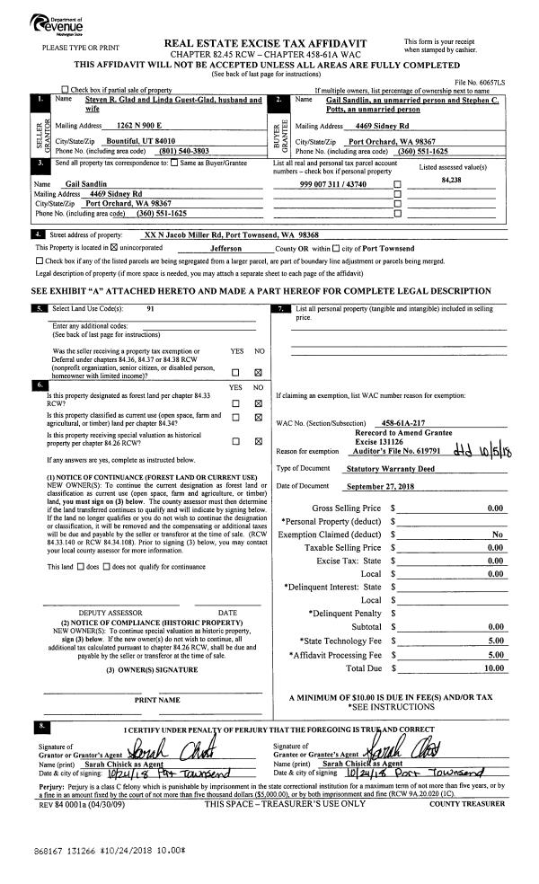 | Mailing Address: | 1095 TREMONT ST PORT TOWNSEND, WA 98368-4029 | % Ownership: | 100.0000000000% |