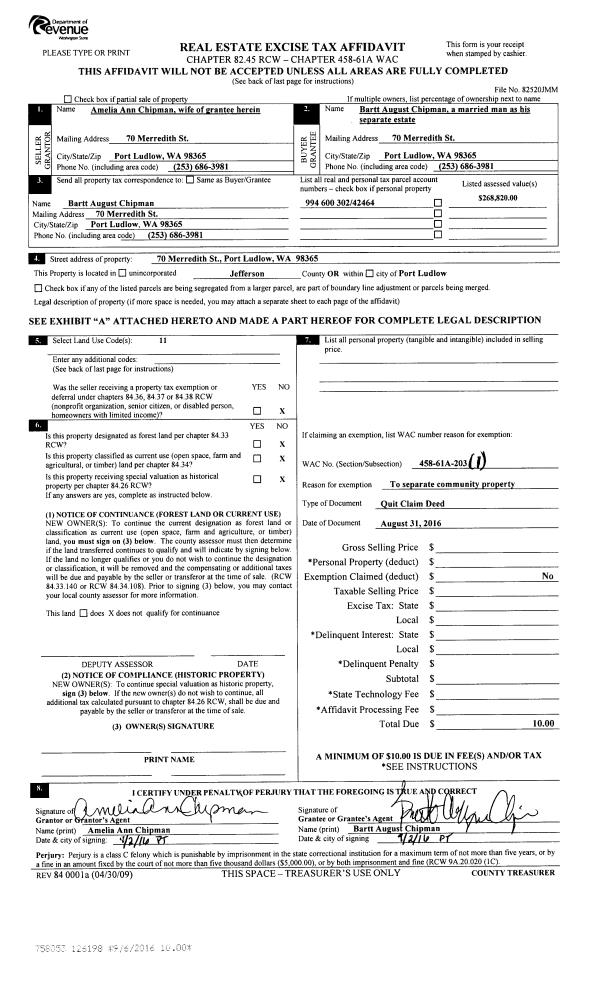 | Mailing Address: | PO BOX 746 PORT HADLOCK, WA 98339-0746 | % Ownership: | 100.0000000000% |