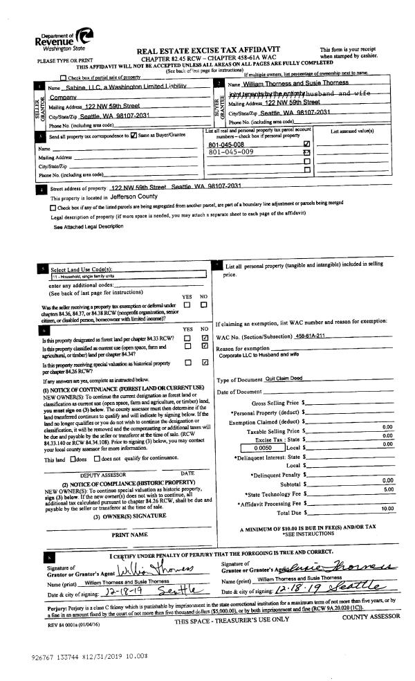 | Mailing Address: | CASEY GRIBBLE 22 COOPER AVENUE SPUR UNDERWOOD, WA 98651-9043 | % Ownership: | 100.0000000000% |