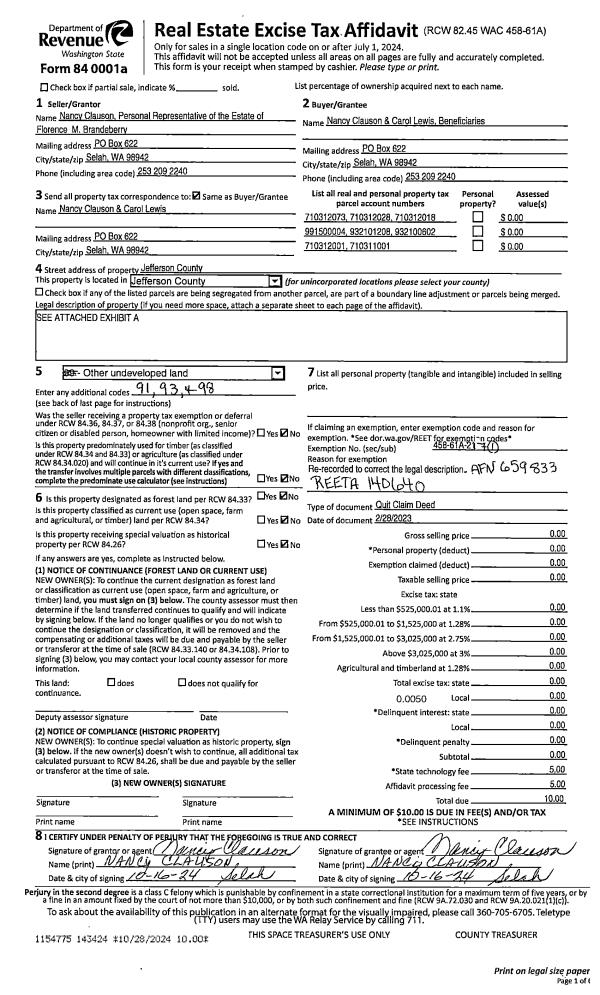 | 6 | 09/09/2013 | QCD | Quit Claim Deed | JAY D DAVIDSON | DOUGLAS & WENDY DAVIDSON | | | | 119983 | |