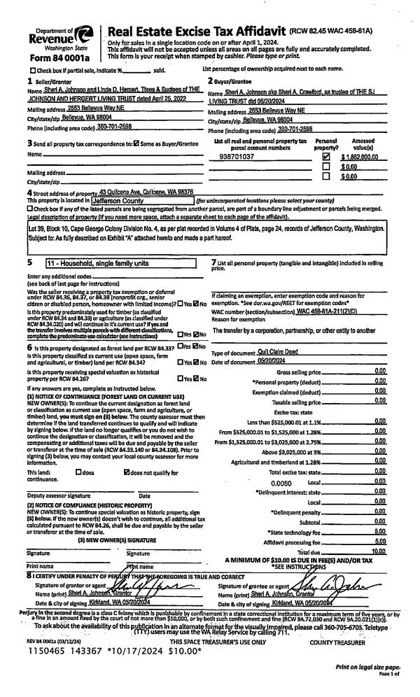 | Mailing Address: | NORMA FRIED 1656 YEW AVE NE OLYMPIA, WA 98506-4461 | % Ownership: | 100.0000000000% |