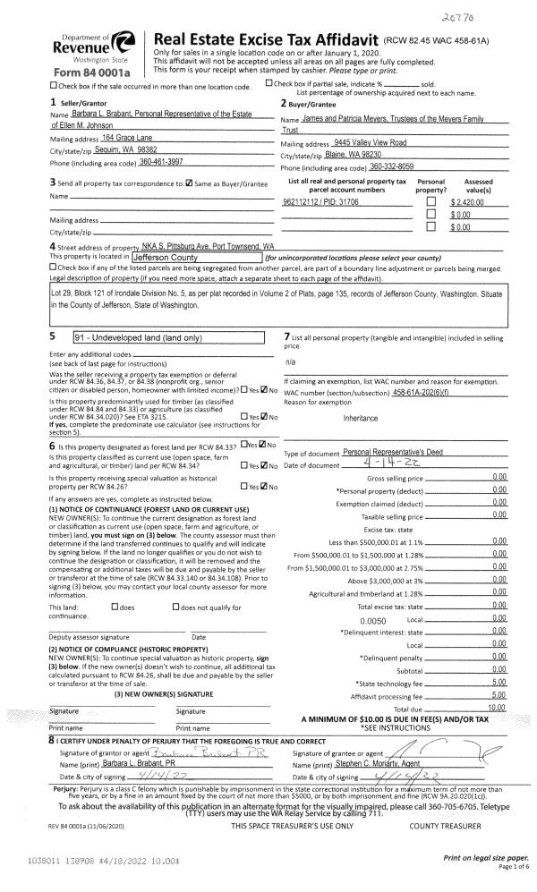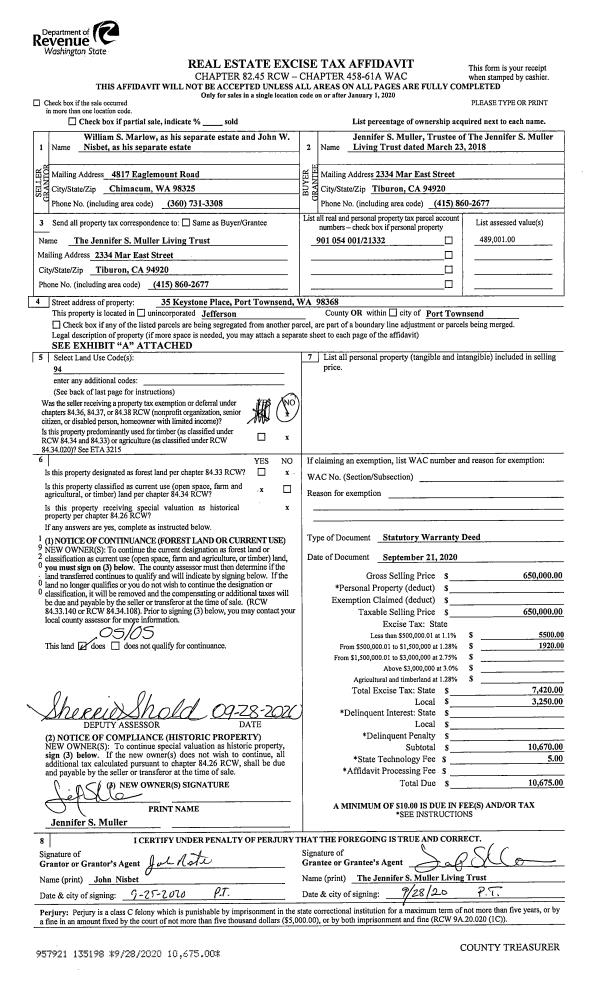 | Mailing Address: | 5100 JACKMAN ST PORT TOWNSEND, WA 98368-1542 | % Ownership: | 100.0000000000% |