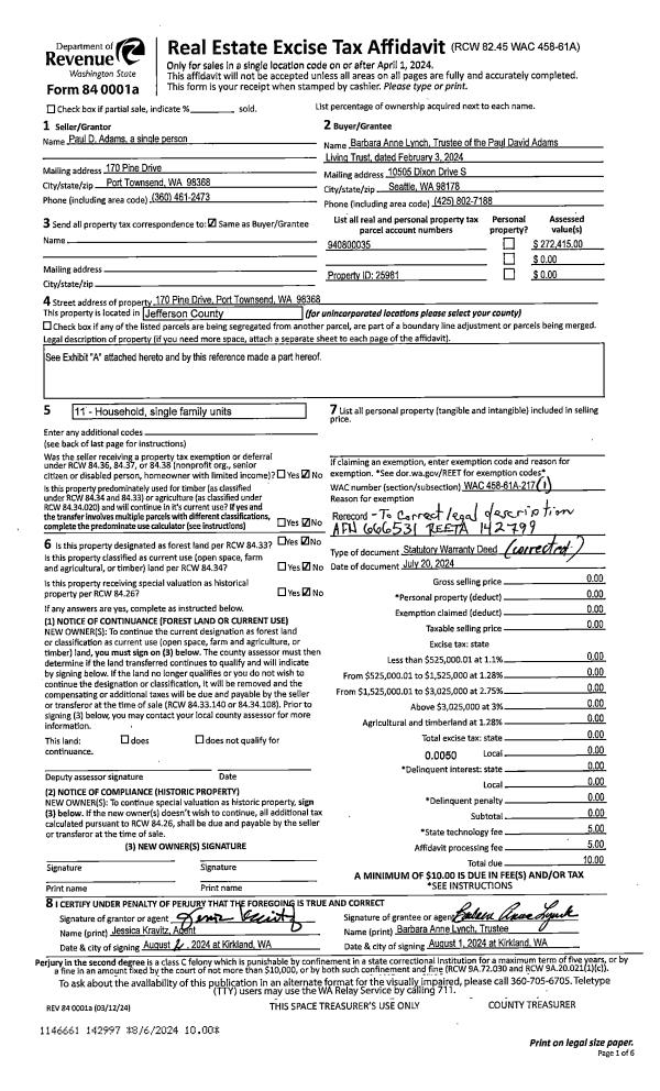 | 1 | 02/19/2021 | SWD | Statutory Warranty Deed | CLARK & VIRGINIA CRANDALL REVOCABLE LIVING FAMILY TRUST | CHRISTIAN A NOWAK | | | $175,000.00 | 136185 | |