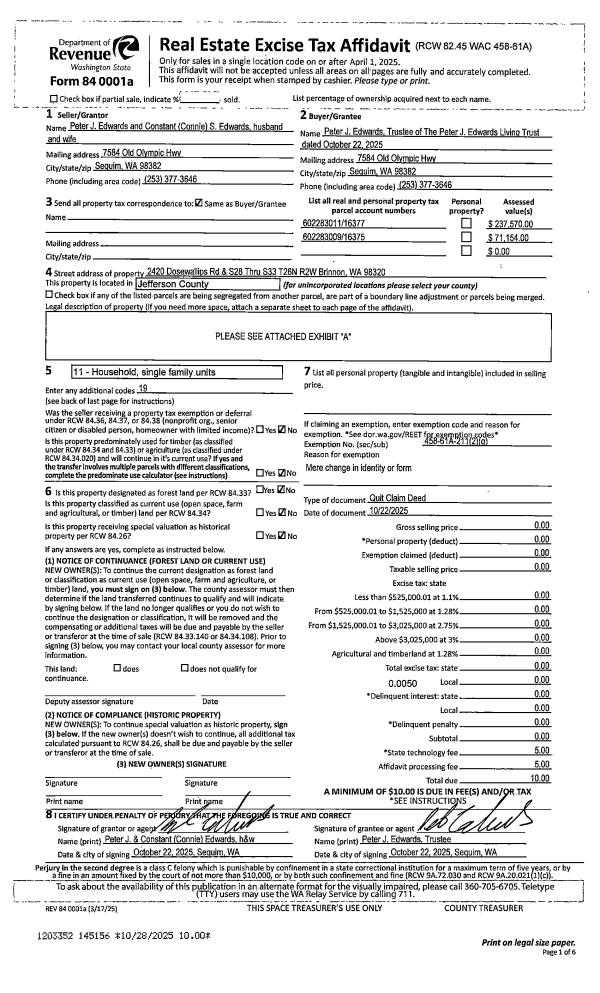 | Mailing Address: | 848 51ST ST PORT TOWNSEND, WA 98368-1502 | % Ownership: | 100.0000000000% |