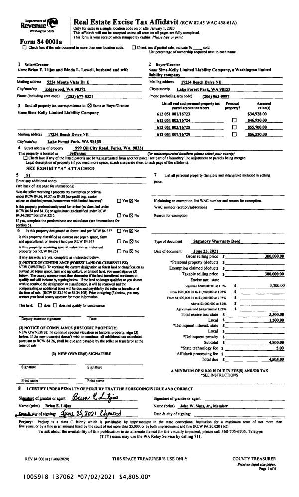 | 1 | 06/14/2021 | PRD | Personal Representatives Deed | | | | | | 0 | |