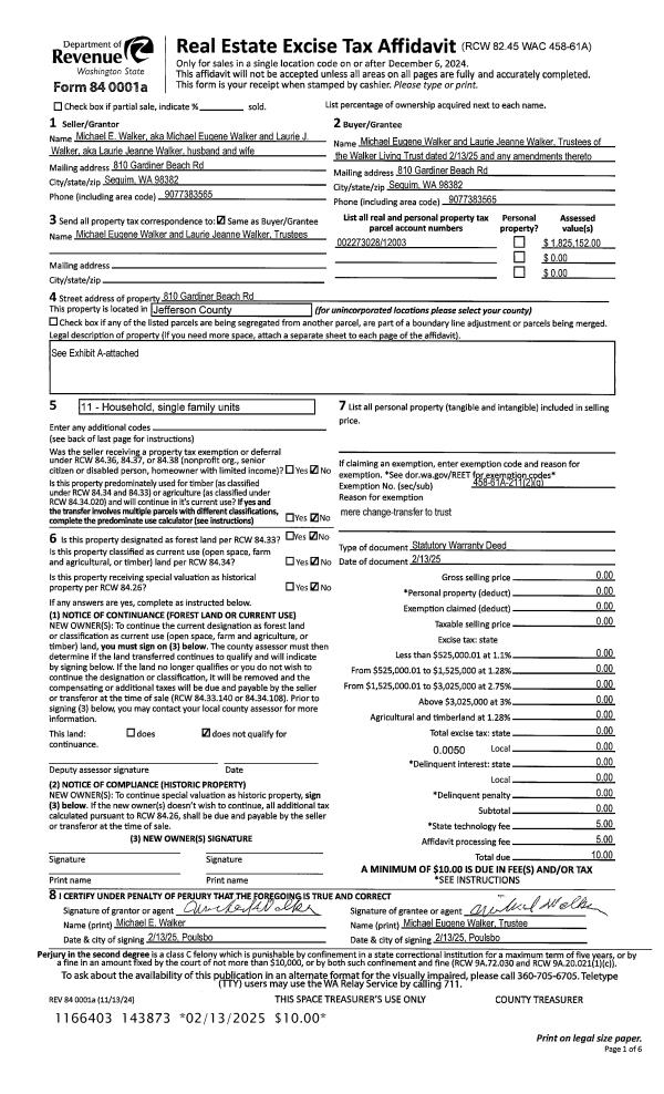 | Mailing Address: | 1284 43RD ST PORT TOWNSEND, WA 98368-1525 | % Ownership: | 100.0000000000% |