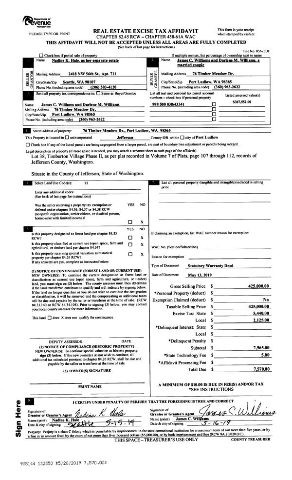 | Mailing Address: | FRED B & JANIE R KIMBALL 560 57TH ST PORT TOWNSEND, WA 98368-1326 | % Ownership: | 100.0000000000% |