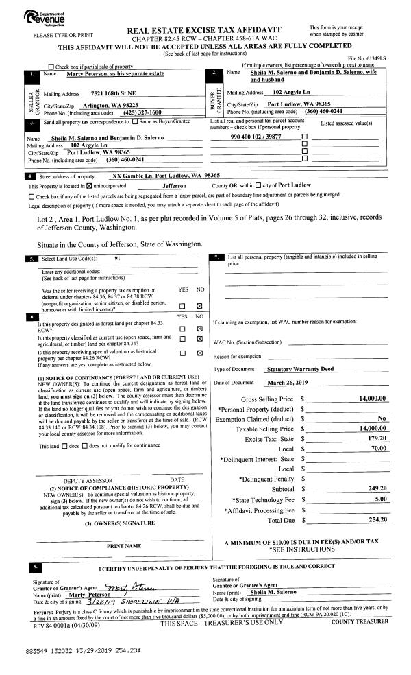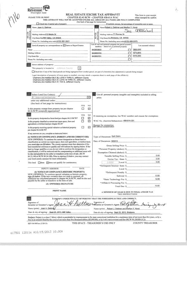 | Mailing Address: | 611 59TH ST PORT TOWNSEND, WA 98368 | % Ownership: | 100.0000000000% |