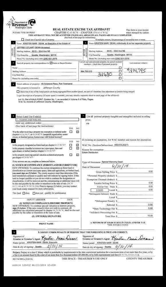 | Mailing Address: | ANGELA J COSSELL TRUSTEE 597 BISHOP HILL RD CHIMACUM, WA 98325-8721 | % Ownership: | 100.0000000000% |