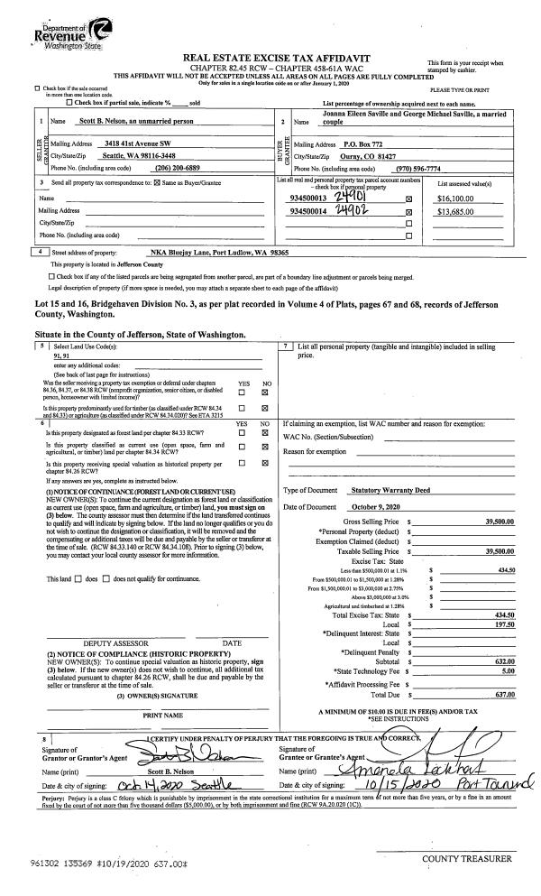 | 1 | 2555-1375S | Quilcene Bldg Sites 1+/- Acre | 0.0000 | 0.00 | 0.00 | 0.00 | 1.00 | $73,600 | $0 |