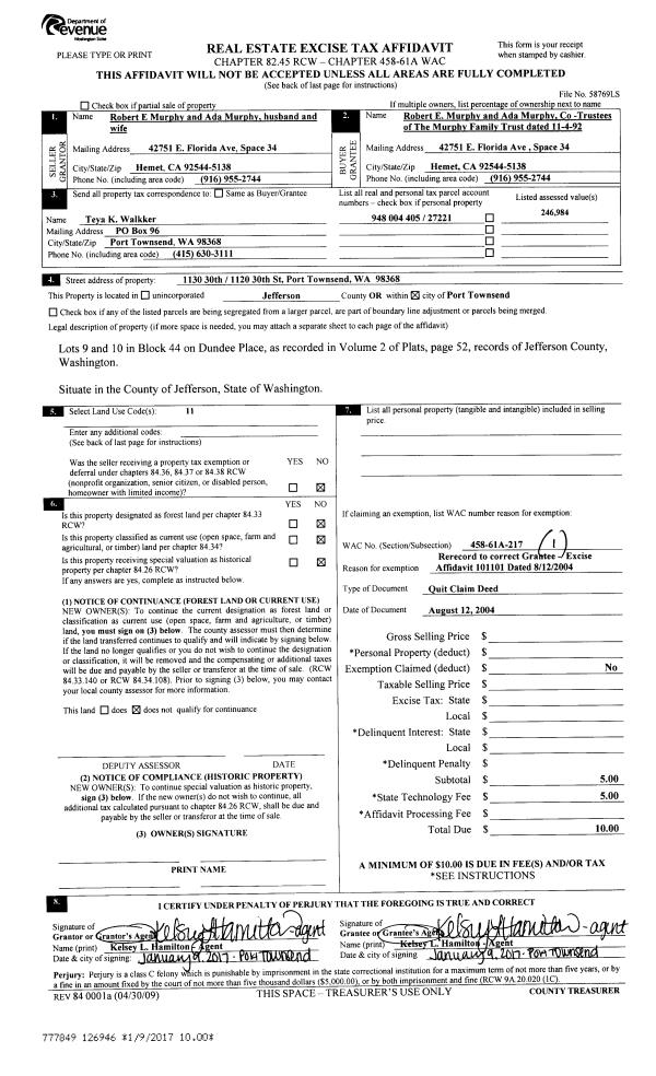 | 1 | 08/08/2017 | SWD | Statutory Warranty Deed | | | | | | 128528 | |