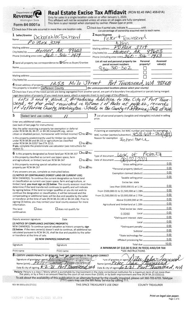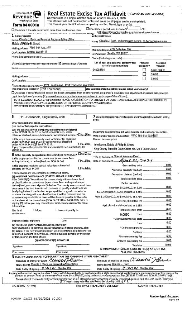 | Mailing Address: | 82 BROOKSIDE ST PORT HADLOCK, WA 98339-8730 | % Ownership: | 100.0000000000% |