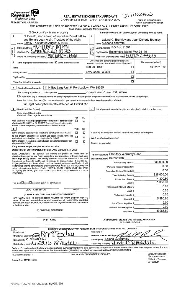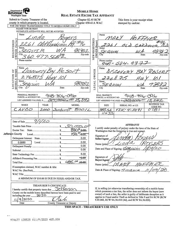 | 1 | 10/25/2021 | SWD | Statutory Warranty Deed | VETERANS OF FOREIGN WAR POST 3213 | US HWY 101 VENTURES LLC | | | $285,000.00 | 137972 | |
