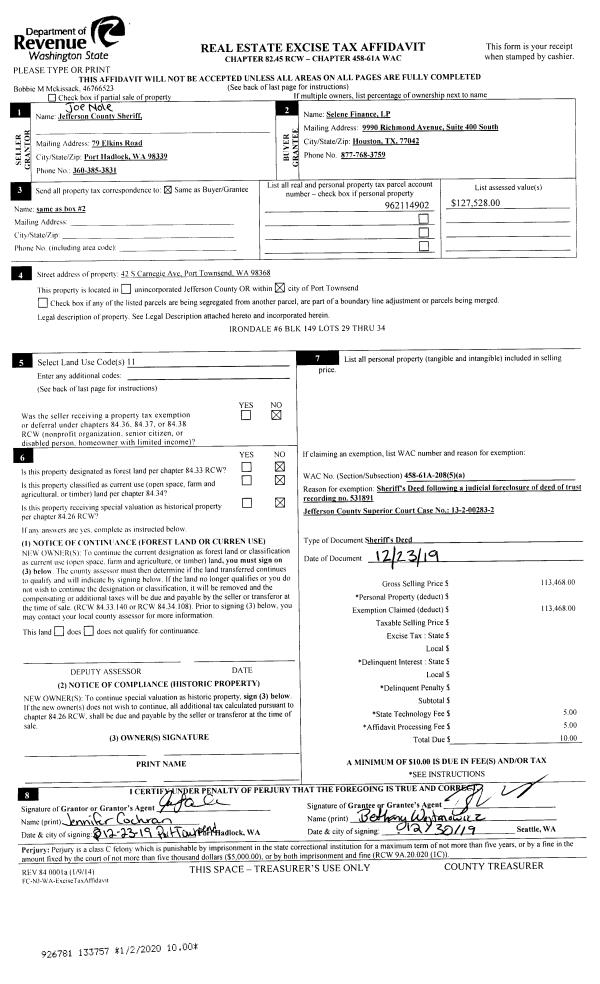 | 1 | 06/26/2020 | SWD | Statutory Warranty Deed | LISA M STOUTMOOSE | STEVE G KING | | | $115,000.00 | 134588 | |