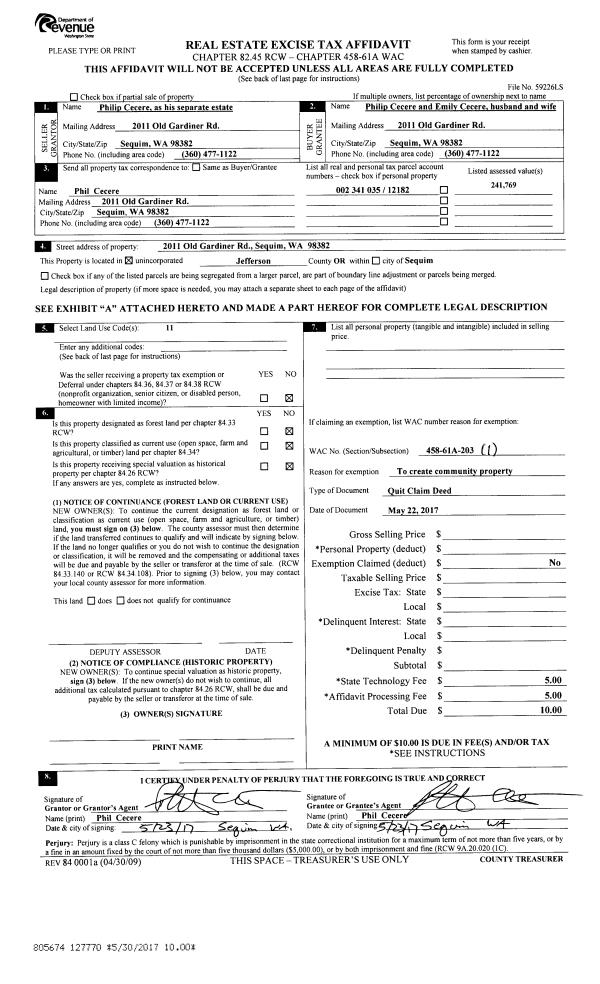 | Mailing Address: | MARLENE J ERICSEN 181 N PALMER DR PORT TOWNSEND, WA 98368-9535 | % Ownership: | 100.0000000000% |