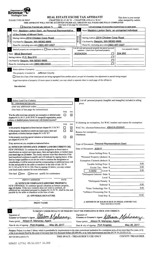 | Mailing Address: | 150 S PALMER DR PORT TOWNSEND, WA 98368 | % Ownership: | 100.0000000000% |