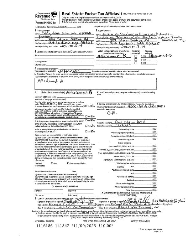 | Mailing Address: | JIMMY JIMENEZ TRUSTEE ANNE M JIMENEZ TRUSTEE PO BOX 238 PORT TOWNSEND, WA 98368 | % Ownership: | 100.0000000000% |