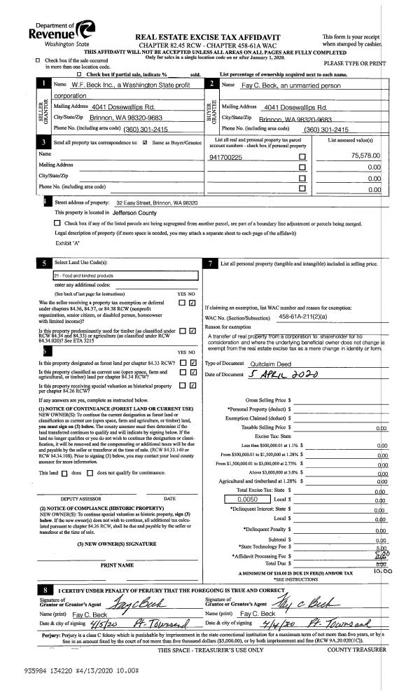 | Mailing Address: | 330 S PALMER DR PORT TOWNSEND, WA 98368-9498 | % Ownership: | 100.0000000000% |