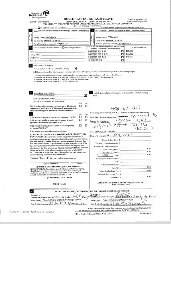 | 4 | 04/09/2015 | QCD | Quit Claim Deed | SUE I CHADWICK TRSTEE | TAKEO KAWAGUCHI | | | | 123339 | |