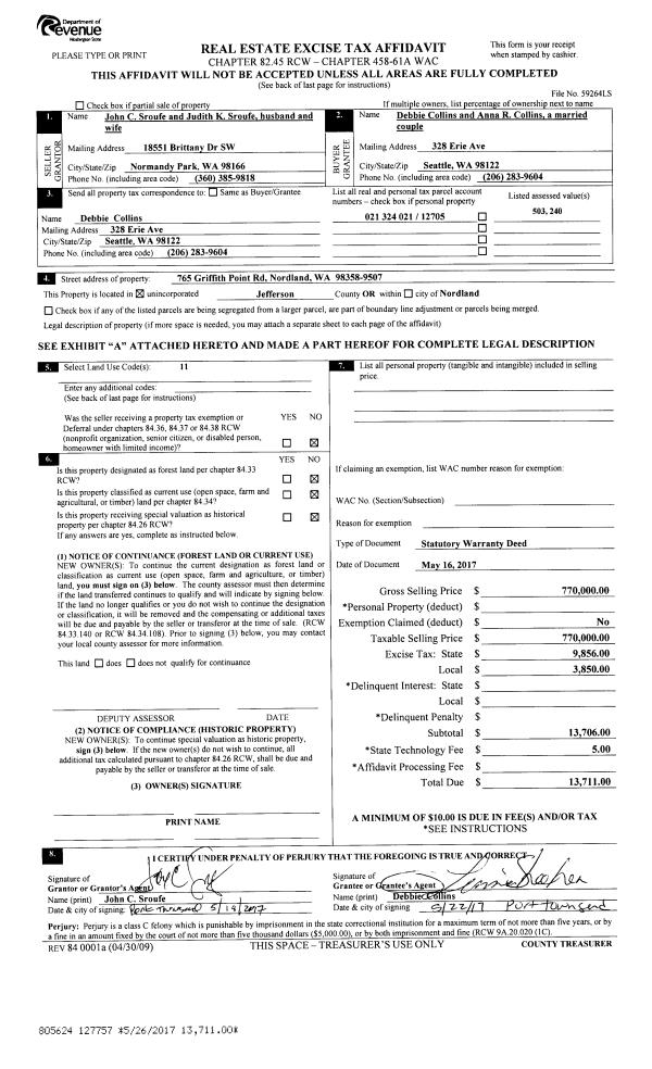 | 1 | 08/24/2017 | SWD | Statutory Warranty Deed | SPENCER W FLOYD TRUST | HENRY LOGAN & RICHARD TUCKER | | | $330,000.00 | 128429 | |