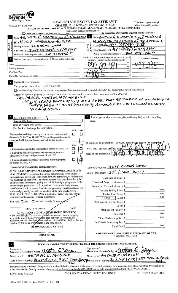 | Mailing Address: | 91 N RHODODENDRON DR PORT TOWNSEND, WA 98368-9485 | % Ownership: | 100.0000000000% |