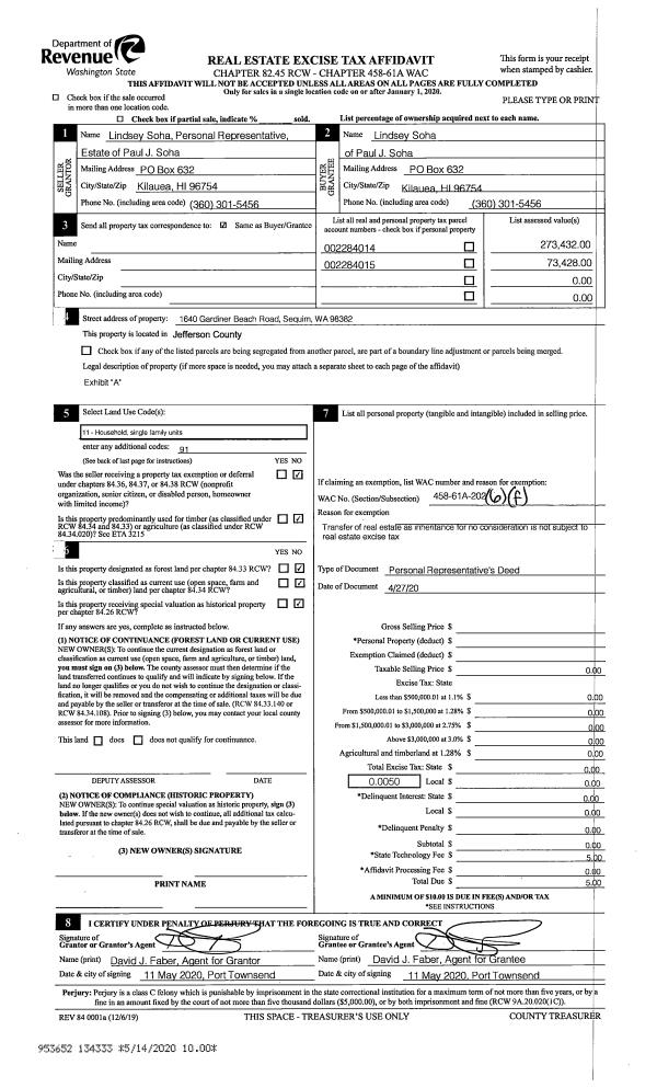 | 1 | 01/23/2021 | SWD | Statutory Warranty Deed | SANDRA B SMITH | SMITH TRUST | | | | 136126 | |