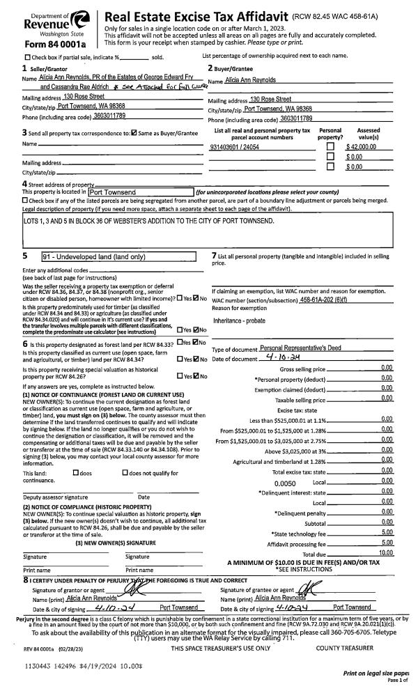 | Mailing Address: | VICKI HORTON 212 RHODODENDRON DR PORT TOWNSEND, WA 98368-8901 | % Ownership: | 100.0000000000% |
