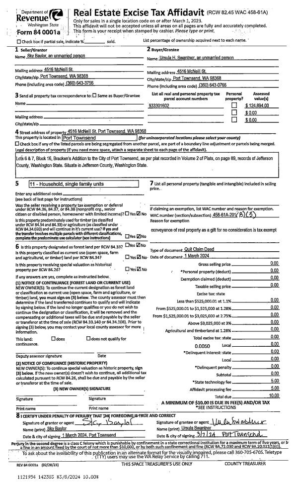 | 1 | 01/30/2024 | SWD | Statutory Warranty Deed | MATTHEW C & ALONDA L MORAN | MICHELLE S FOX | | | $480,000.00 | 142178 | |