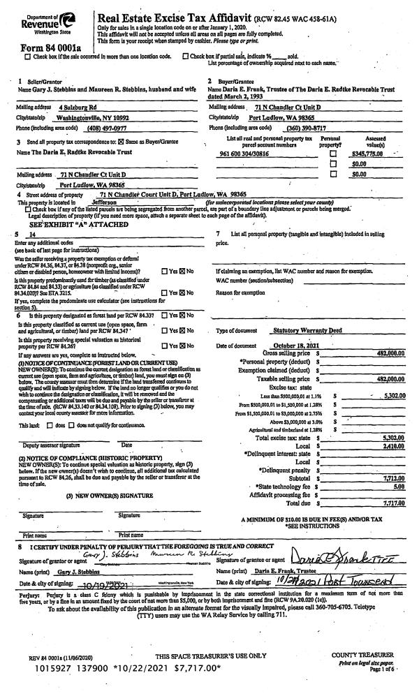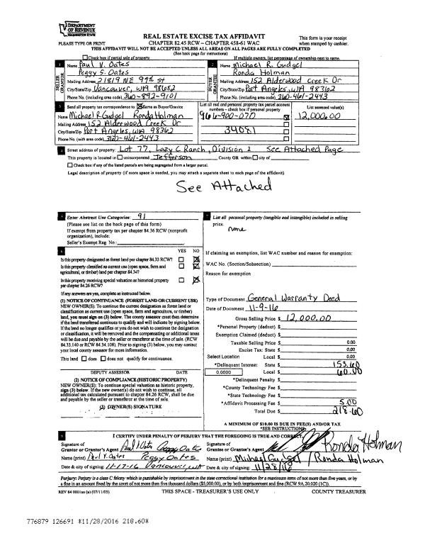 | 4 | 06/15/2017 | SWD | Statutory Warranty Deed | LARRY J & JANET I WOOD | LANI M HUBBARD | | | $274,600.00 | 128045 | |