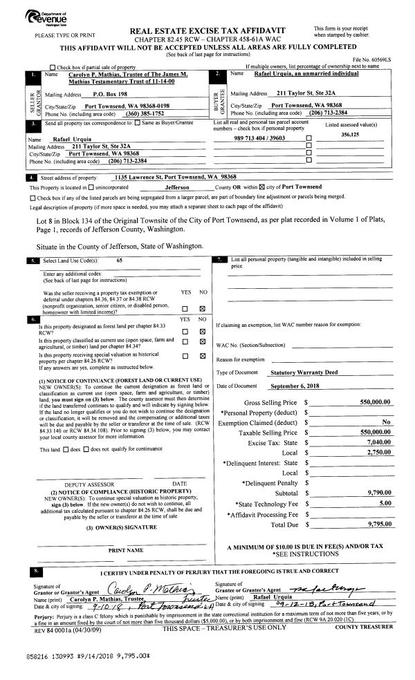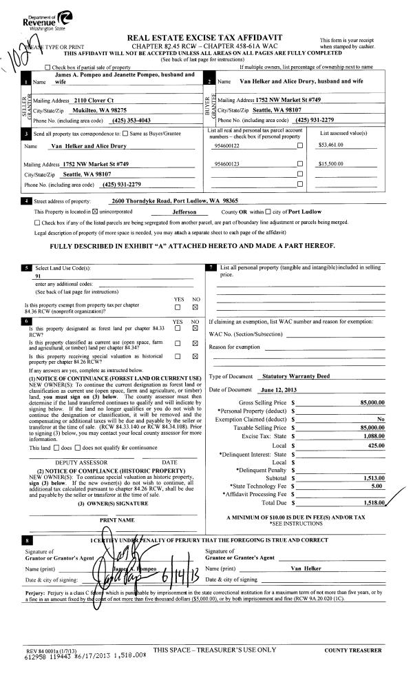 | Mailing Address: | 200 N RHODODENDRON DR PORT TOWNSEND, WA 98368-9484 | % Ownership: | 100.0000000000% |