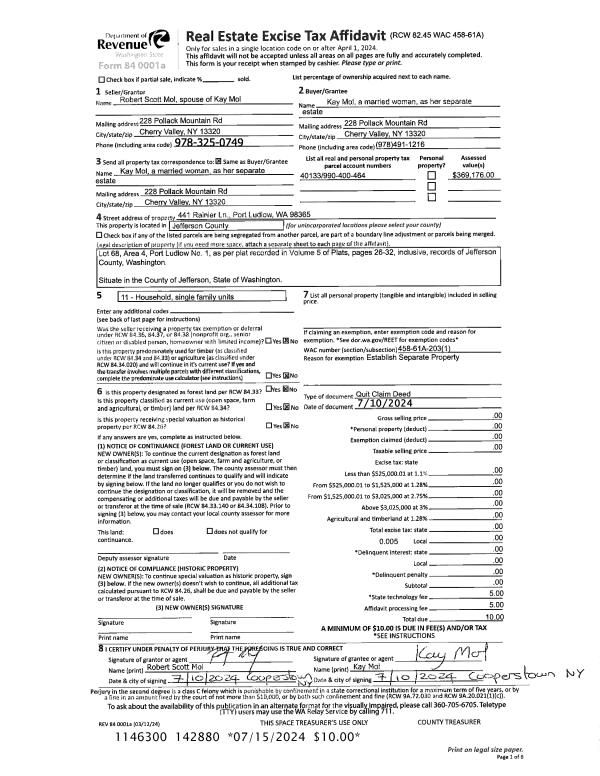 | Mailing Address: | 2421 HASTINGS AVE W PORT TOWNSEND, WA 98368-9291 | % Ownership: | 100.0000000000% |