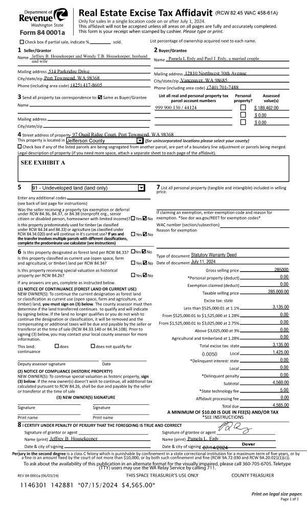 | 1 | 10/03/2025 | SWD | Statutory Warranty Deed | ROBERT J MARETT | WILL & JANEWILL PEOPLES | | | $880,000.00 | 145049 | |