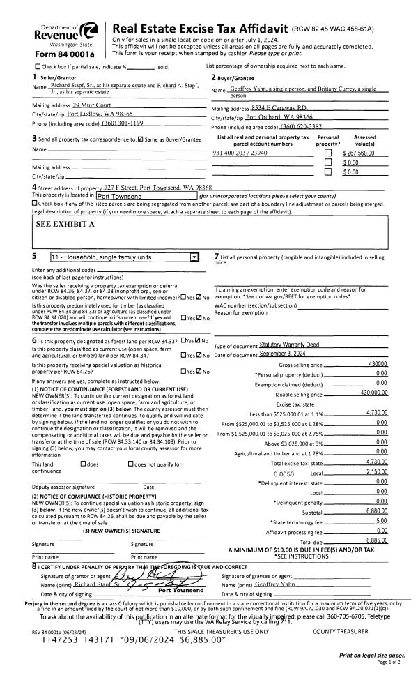 | 1 | 04/14/2024 | SWD | Statutory Warranty Deed | JOSE T & SUSAN D PANGANIBAN | TERRY L & KAREN E WALKER | | | $155,000.00 | 142491 | |