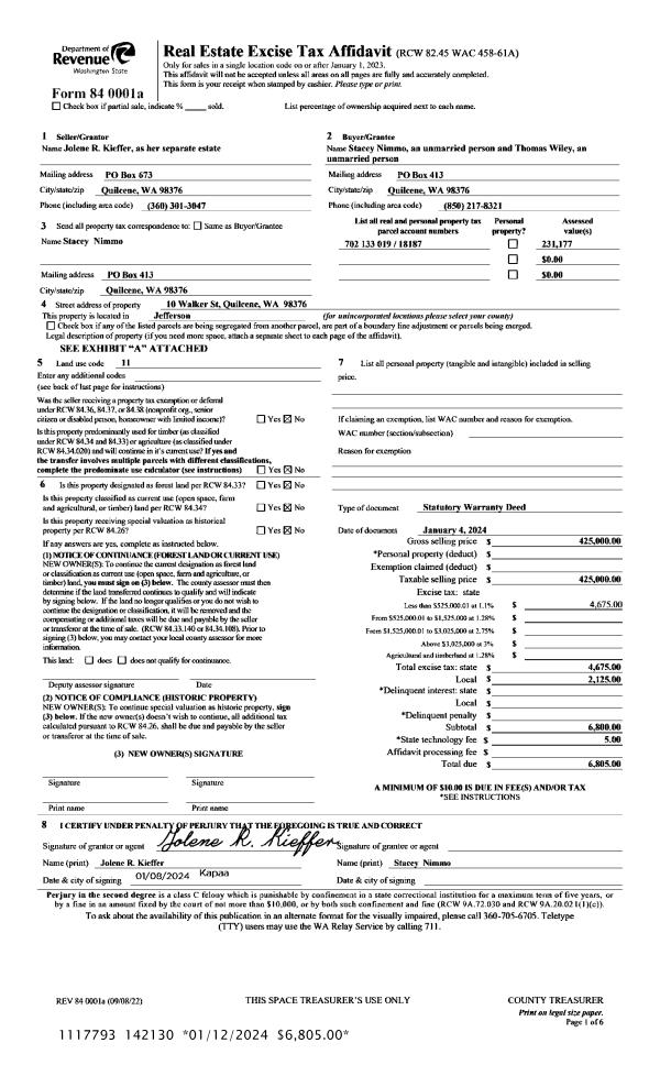| 1 | 09/29/2023 | SWD | Statutory Warranty Deed | SARAH C HEINER RESTATED TRUST | ANTOINE COURTEMANCHE | | | $135,000.00 | 141663 | |