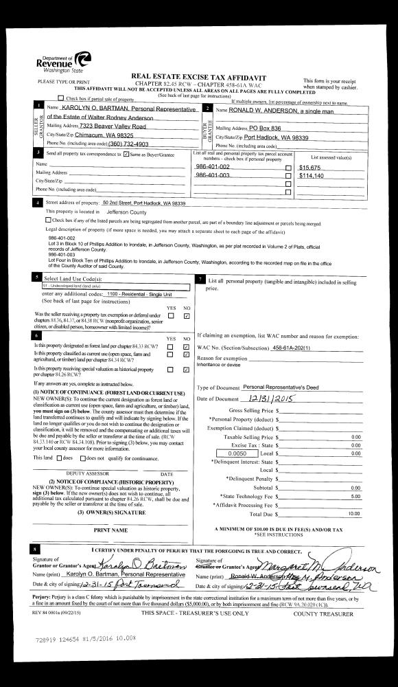 | Mailing Address: | LEAH LAYMAN 1080 MCPHERSON ST PORT TOWNSEND, WA 98368-2342 | % Ownership: | 100.0000000000% |