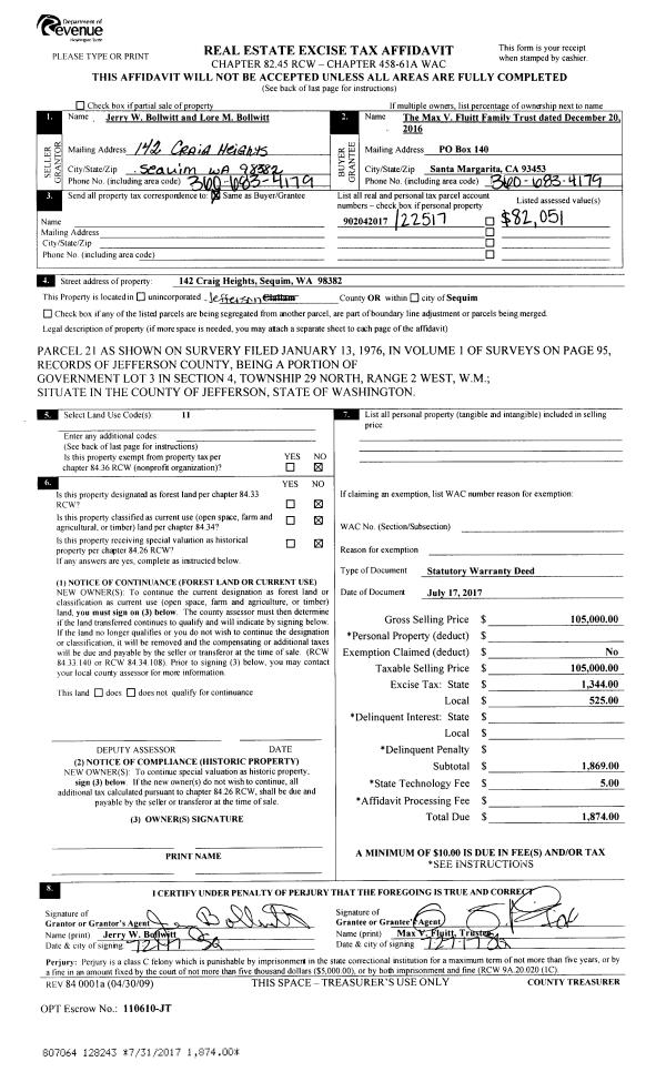 | 1 | 03/20/2018 | SWD | Statutory Warranty Deed | RUDY H THEOBALD TRSTE | DAVID E PAINE | | | $270,000.00 | 129827 | |